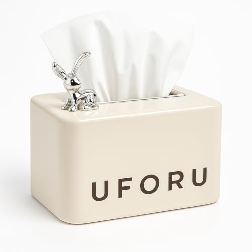 Generic - UFORU Decorative Tissue Box – Modern Ceramic Tissue Holder with Silver Rabbit Design, Elegant Home Décor for Living Room, Bedroom, Office, or Bathroom