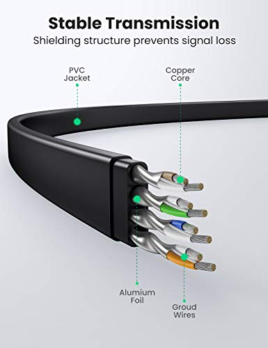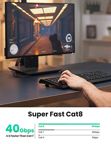 - High-Speed 40Gbps RJ45 Cable: UGREEN CAT 8 Ethernet cable supports up to 40Gbps data transfer without dropout (4x faster than Cat 7 with 10Gbps) and 2000MHz bandwidth (3x faster than Cat 7 with 600MHz). Ideal for online gaming, live streams, large file downloading, etc. A noticeable increase in speed greatly improves the gaming experience.