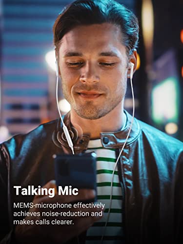 - تدعم الميكروفون والتحكم المباشر: سماعات أذن بسلك مع ميكروفون مدمج وتحكم مباشر، تم دمج السلك في وحدة تحكم مدمجة وميكروفون عالي الجودة حيث يجلب التحدث وجهًا لوجه، وتسمح وحدة التحكم بالتشغيل وإيقاف الموسيقى وتشغيل التراك التالي أو السابق والرد على المكالمات وتعليق المكالمات دون إخراج الموبايل من الجيب.
