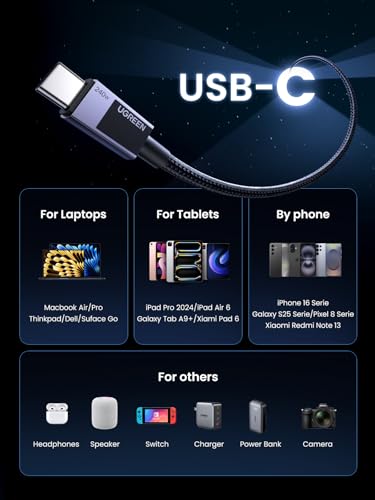 UGREEN - كابل شحن سريع L513 USB-C إلى USB-C PD من يوجرين بطول 1 م لون رمادي سبيس جراي