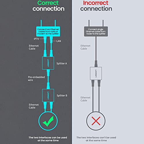 UGREEN - UGREEN RJ45 Splitter Adapter 2 Pack (Black),Single use can be Used as Network Cable Extender, only Interface 1 is Available,Use in Pairs to Make LAN Cable 1 to 2