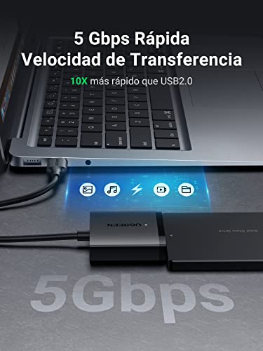 - معدل نقل يصل إلى 5 جيجابايت في الثانية: يدعم محول يو اس بي 3.0 إلى ساتا من يوجرين بروتوكول نقل يو ايه اس بي، أسرع بنسبة 70% من يو اس بي 3.0 التقليدي ويقلل بنسبة 80% في موارد المعالج المطلوبة، مما يتيح لك الاستفادة الكاملة من الإمكانات الكاملة لساتا III SSD/HDD. عند إقرانها بوحدة تحكم مضيف تدعم UASP. يمكن لبروتوكول نقل يو ايه اس بي فقط تسريع سرعة القراءة والكتابة للقرص الصلب ذو الحالة الثابتة..