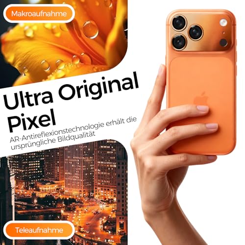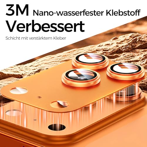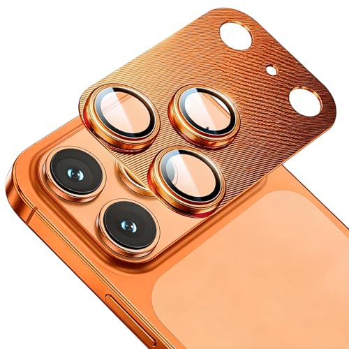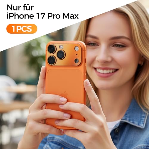 UICCVOKK - واقي عدسة لحماية الكاميرا بلوحة معدنية بدرجة صلابة 9H من زجاج مقوى عالي الوضوح لحماية العدسة لموبايل آيفون 17 برو ماكس من UICCVOKK، لون برتقالي مطفي، قطعة واحدة