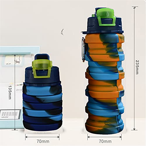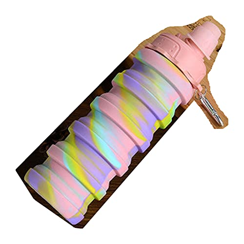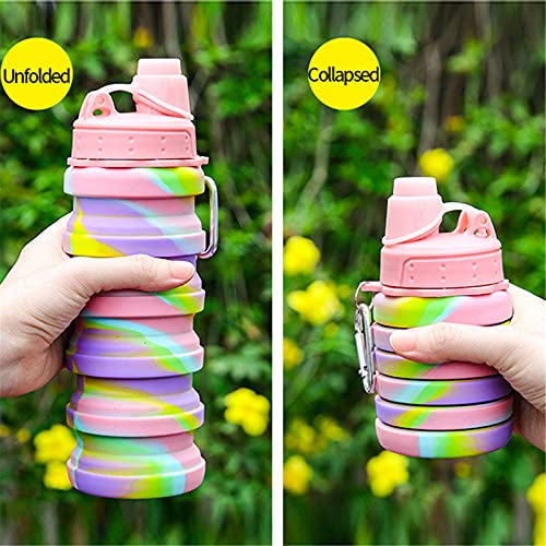 UKKD - Water bottle Silicone Water Bottle Foldable Cup Bottle Fruit Juice Leak-Proof Bottle With Lid 500Ml-B Camouflage Pink