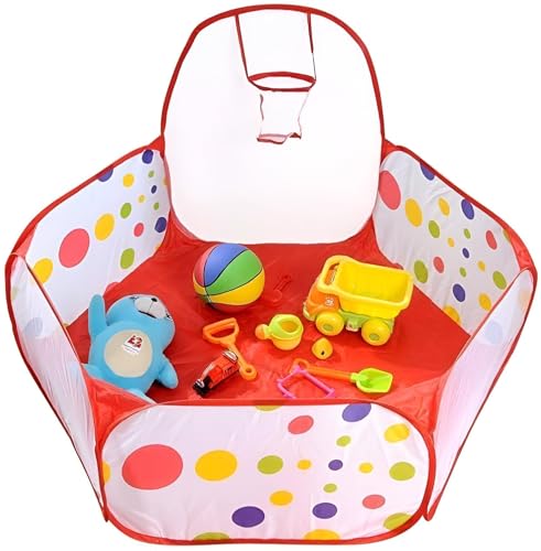 - The product includes a basketball hoop, adding an element of active play and coordination development, encouraging children to practice their motor skills while engaging in imaginative basketball games within the pit.