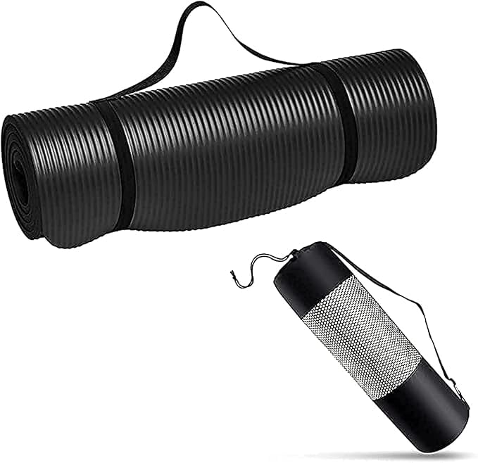 Generic - Ultimate Premium Yoga Mat with Carrying Bag - 10mm Thick Non-Slip Yoga Mat - Ideal for High-Intensity Interval Workouts, Pilates, Yoga and Many Other Home Workouts (Black+Bag)