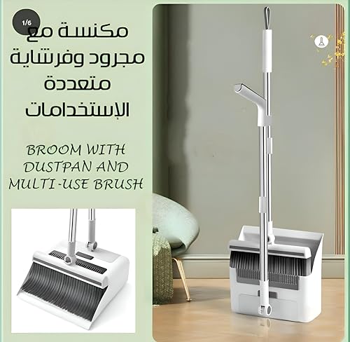 Generic - مجموعة التنظيف المثالية - عبوة تنظيف منزلية مبتكرة تتميز بمكنسة طويلة وجاروف قابل للطي وفرشاة متعددة الوظائف تضمن إزالة الغبار الشاملة والتنظيم السريع في أي وقت