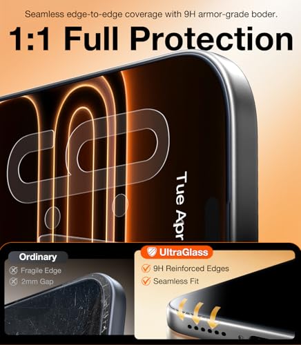 - 【Unbreakable TOP 9H+ Glass, the Excellent 2nd Screen for Your iPhone】Boasting unparalleled shatter resistance and durability. And the core excellence is the top 9H+ tempered glass material, which is widely applied in aerospace and military fields for its ① Shatter-proof ② Scratch & Wear Resistance ③ Durability that is 7-8 times higher than other materials. Thus, UltraGlass builds a second tough screen for your iPhone 16 Pro Max.
