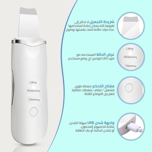 Generic - جهاز تنظيف البشرة ومزيل الرؤوس السوداء بالموجات فوق الصوتية، منظف المسام، اداة شد الوجه وتنظيف البثور السوداء لتنظيف الوجه وترطيبه وشده، بشاحن USB