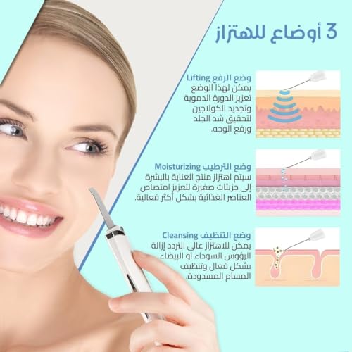 - تقنية متطورة: يستخدم الموجات فوق الصوتية لإزالة الرؤوس السوداء والشوائب بعمق من المسام دون إيذاء البشرة