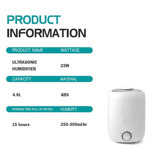 - LARGE CAPACITY: With 4.6 liter capacity, the device gives you long working time of 15 hours, which means longer comfort without having to refill water frequently.