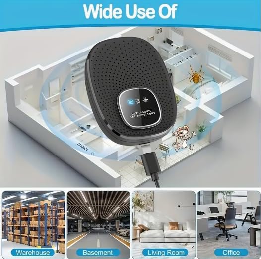 - تقنية رقاقة مزدوجة متقدمة: باستخدام أحدث تقنيات الموجات فوق الصوتية والكهرومغناطيسية، يزعج هذا الجهاز الجهاز العصبي المركزي للآفات. تعمل على طرد الفئران والجرذان والصراصير والنمل والعناكب والبعوض وأكثر من ذلك دون السماح لها بالنمو في مأمن من الصوت.