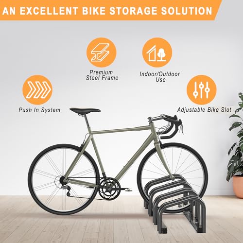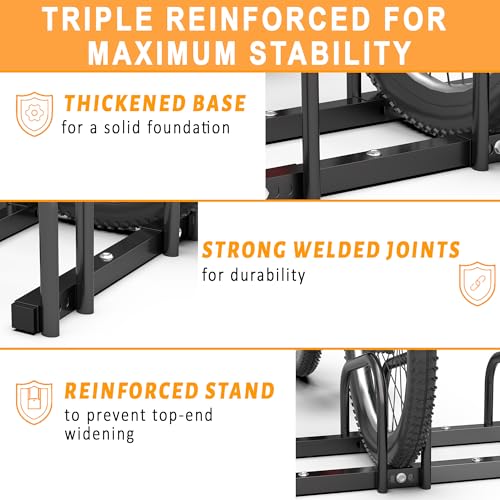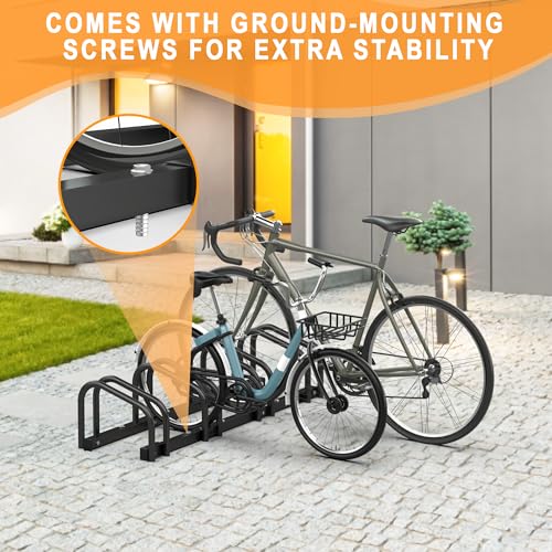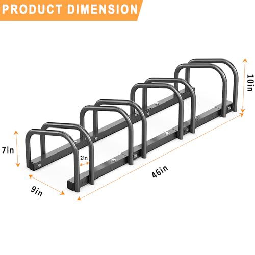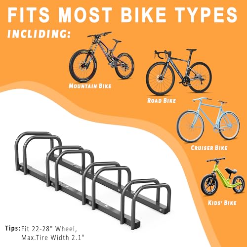 Ultrawall - الترا وول رف تخزين الدراجة للمراب، حامل دراجة ارضي 4 دراجات، حامل وقوف الدراجات للاستخدام الداخلي والخارجي، يناسب اطارات العجلات مقاس 22-28 انش بعرض 2.1 انش