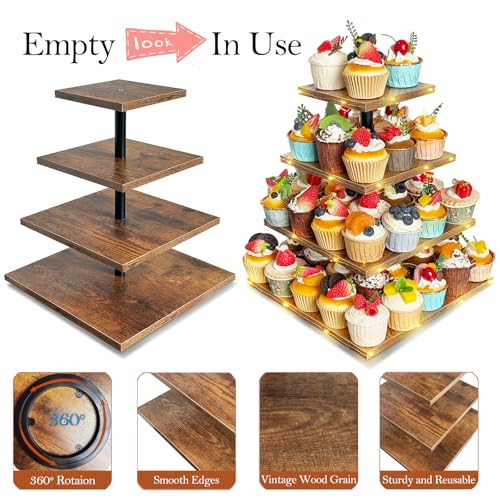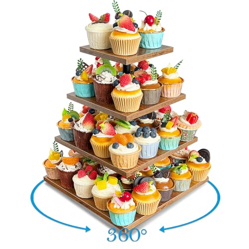 - 【360° Smooth-Rotating 】Upgrade your dessert display with our wooden cupcake stand. Impress your guests with the seamless 360° rotating base—the perfect way to display cupcakes, cakes, or treats from all sides!