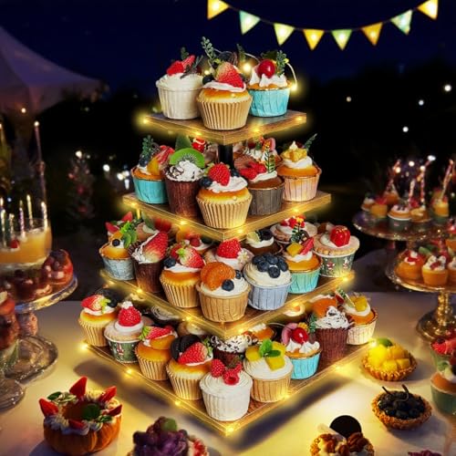 - 【 Magical Glow Instantly Elevates Your Party!】Create a dreamy atmosphere with the BONUS LED lights (No Batteries Included). Simply wrap the warm-white string lights around the cupcake tower for a stunning glow—perfect for Christmas, weddings, or cozy home gatherings