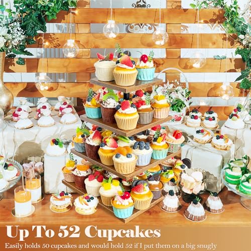 - 【Wood Cupcake Stand for 50 cupcakes】This large-capacity cupcake stand fits up to 52 standard cupcakes (1.75" diameter) with ease! Ideal for weddings, birthdays, or bakeries—no more cramped displays!