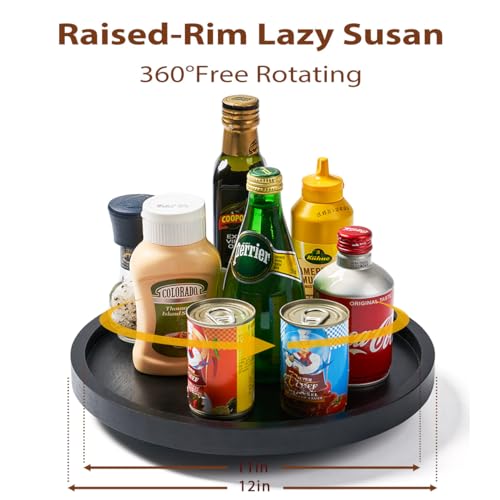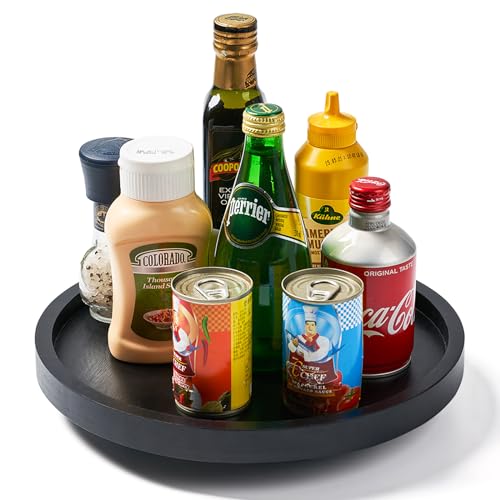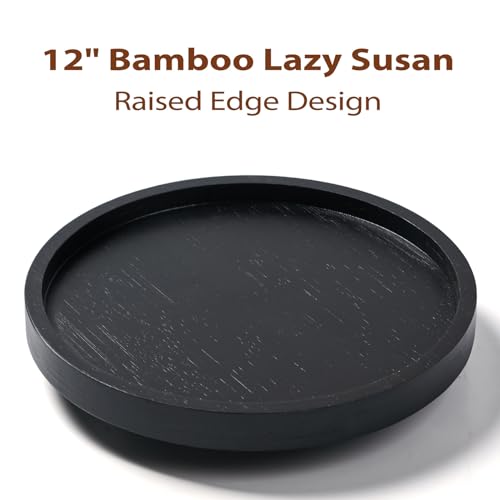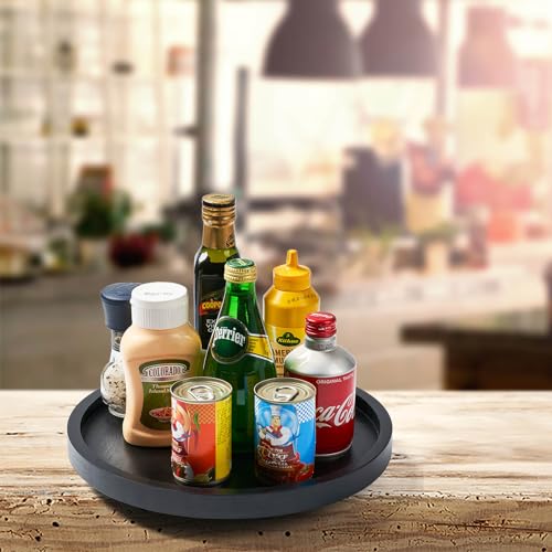 Umilife - منظم دوار يوما لايف 30 سم من خشب البامبو، بتصميم بحافة مرتفعة لتنظيم المطبخ والحمام والتخزين تحت الحوض من يوميليف - لون أسود