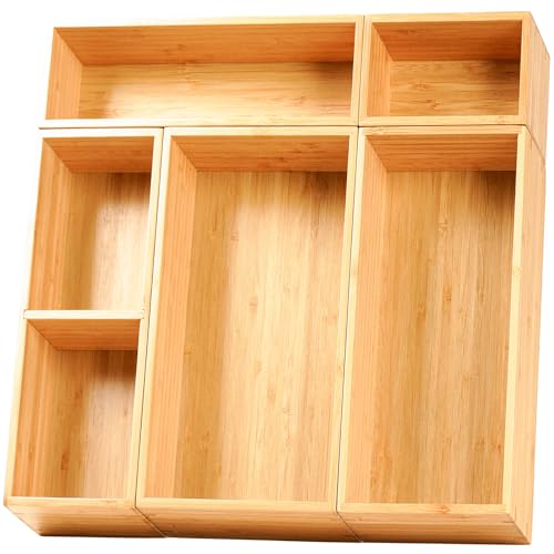 Umilife - Umilife Drawer Organizer Storage Boxes, 2.5" High Bamboo Drawer Dividers, 5 Rearrangeable Bins for Kitchen, Office Desktop, Clothing, Makeup, vanity, Jewelry