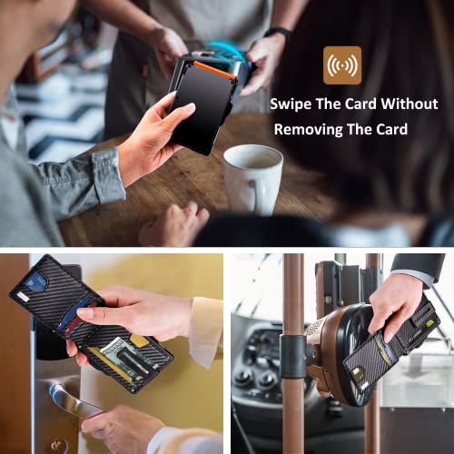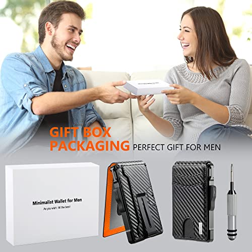 umoven - umoven Wallet for Men - with Money Clip Slim Leather Slots Credit Card Holder RFID Blocking Bifold Minimalist Wallet, Carbon Black and Orange, Minimalist