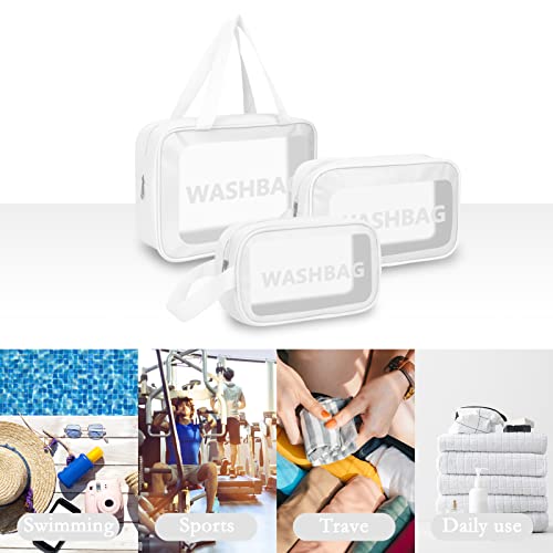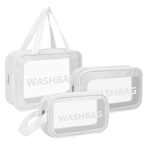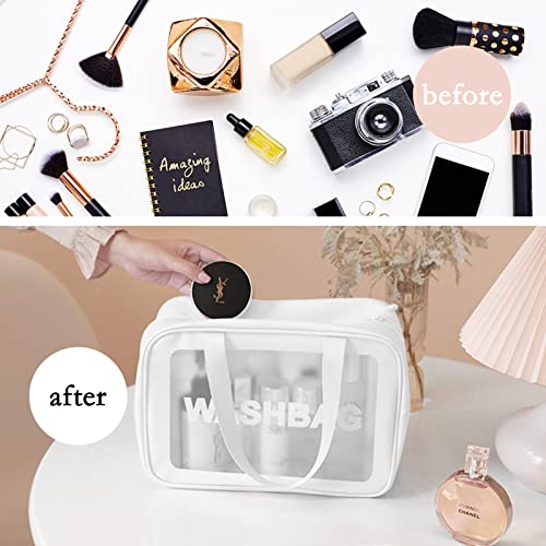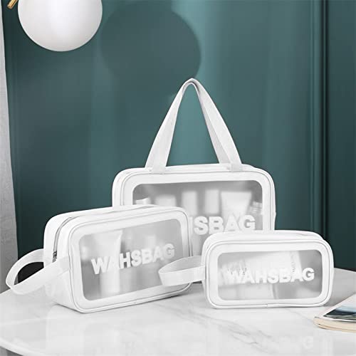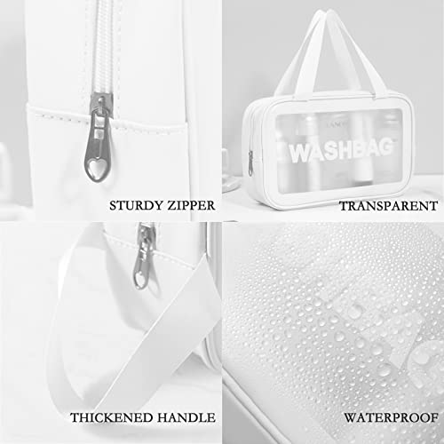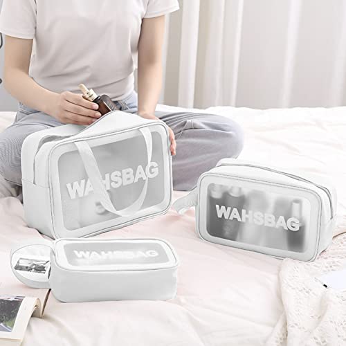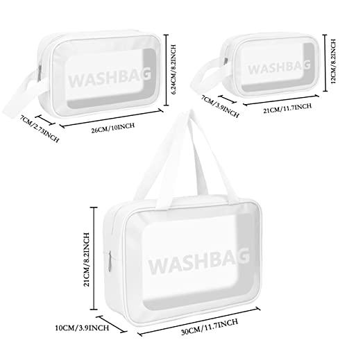 Unaone - Unaone PVC Cosmetic Bag 3 Pieces Toiletry Bag Transparent Travel Makeup Bags Waterproof Cosmetic Bag with Zip Travel Luggage Cosmetic Bag Portable Cosmetic Bag Travel Set 3 Pieces White