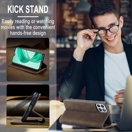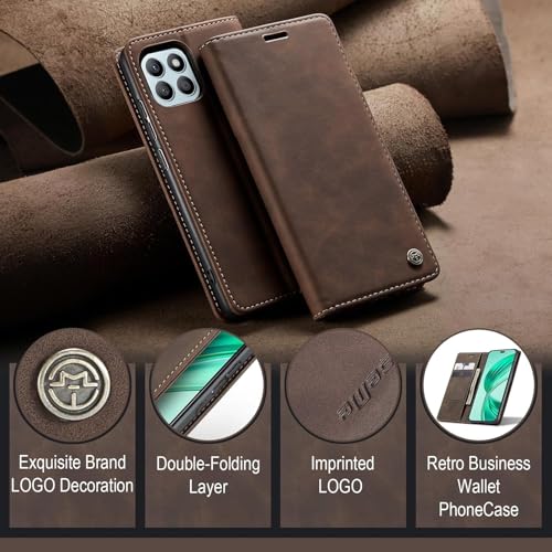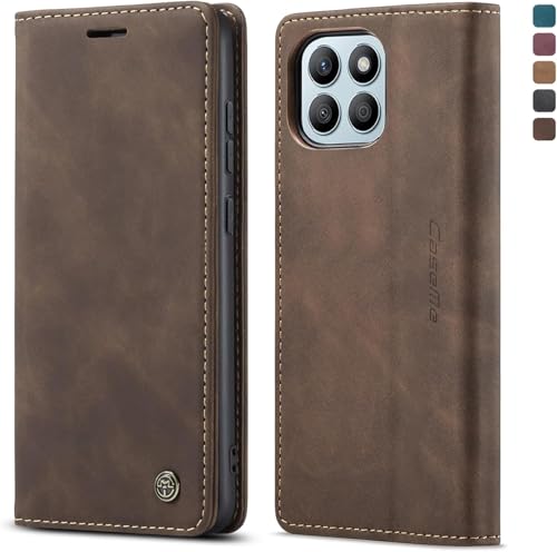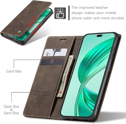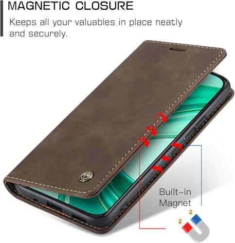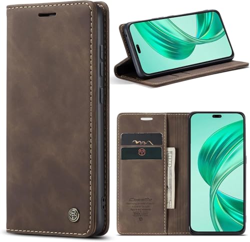 Generic - جراب موبايل متعدد الوظائف قابل للطي أفقي مزود بفتحة للبطاقات وحامل ومحفظة من انبلاك، متوافق مع موبايل هونر X8B، بني قهوة