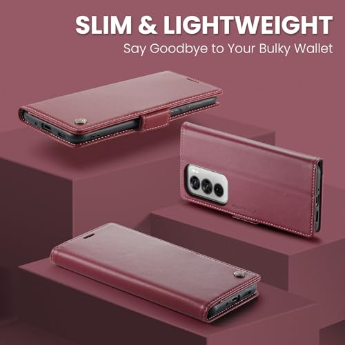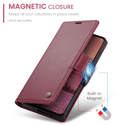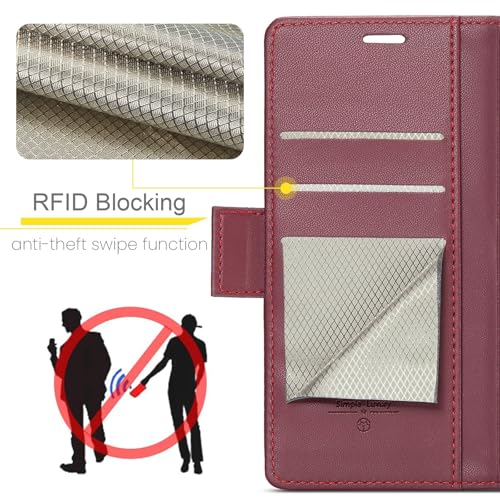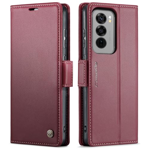 Generic - جراب حماية من الجلد الصناعي الفاخر بتصميم أنيق مضاد للبصمات مع فتحة بطاقات وحامل ومحفظة لموبايل اوبو رينو 12 شبكة الجيل الخامس 5G من انبلاك - موديل 023 (لون أحمر)