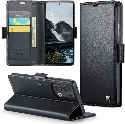 FASCINATION - UNBLACK phone case compatible with oppo reno 13 pro 5G Luxury PU Leather Design Anti Fingerprint 023 Flip Leather Case, with Card Slot & Holder & Wallet for oppo reno 13 pro 5G (Black)