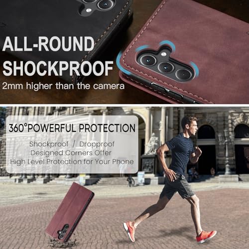 Generic - UNBLACK phone case compatible with samsung galaxy A35 global case Multifunctional Horizontal Flip Leather Case, with Card Slot & Holder & Wallet for samsung galaxy A35 (wine red)