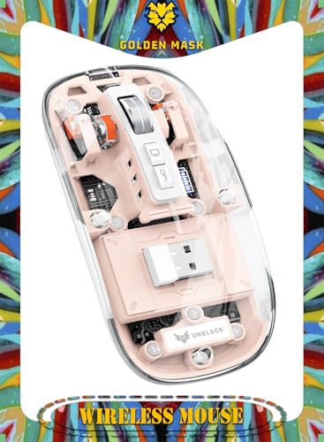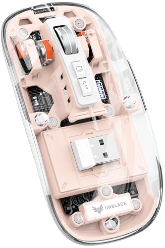 UNBLACK - UNBLACK Wireless Mouse Crystal Transparent, Gaming Adjustable DPI, Triple 2.4G Mode Switching Bluetooth 2, Rechargeable digital display Silent Mouse for PC Laptops Mac iPhone Android - (PINK)