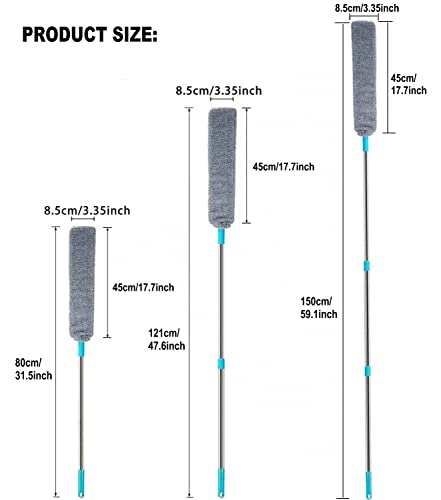 - LONGER TELESCOPING POLE - The microfiber duster handle is made of heavy duty stainless steel and can be adjusted freely from 31.5 inches to 47.6 inches according to your cleaning demands, bendable brush head will help you clean under appliance with ease. Soft microfiber head provide maximum contact cleaning and clean large surface quickly.