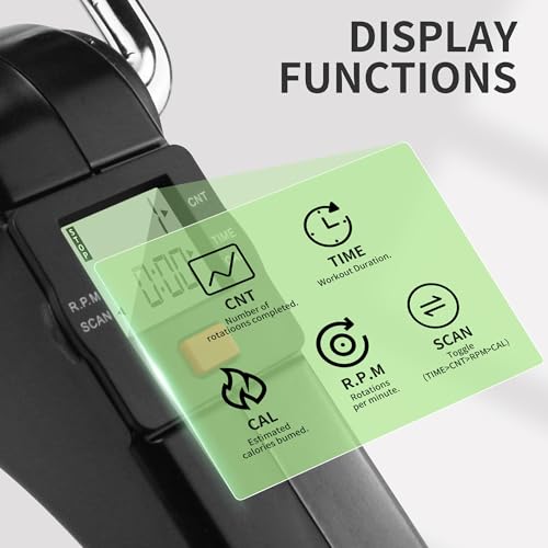 - LCD Display: Track progress in real time.The built in LCD monitor shows workout duration, rotation count, speed (RPM), and calories burned, helping users stay motivated and monitor fitness goals.