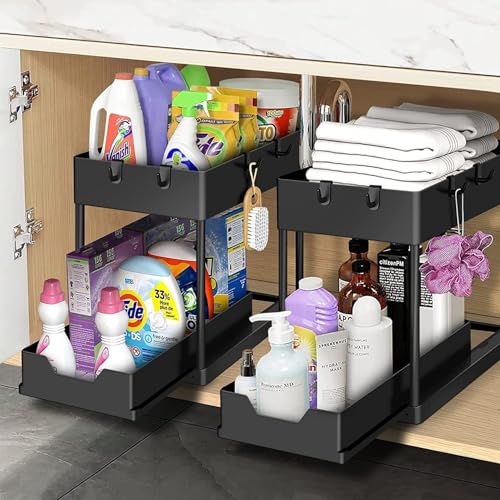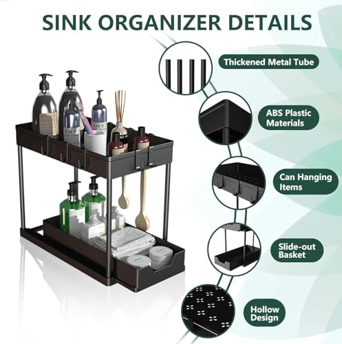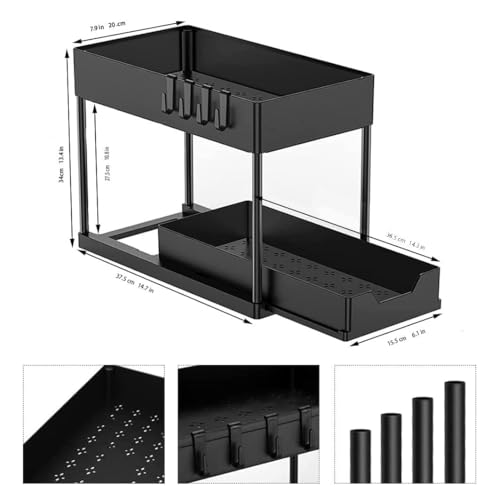 Generic - Under Sink Organizer - Durable and Easy-to-Use Storage Rack for Kitchen or Bathroom with Pull-Out Drawer and Multi-Use Hooks, Combining Metal and Plastic for Versatile Space Saving