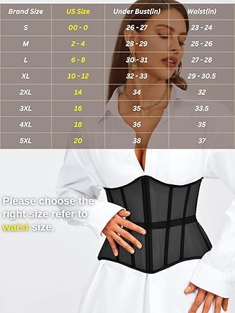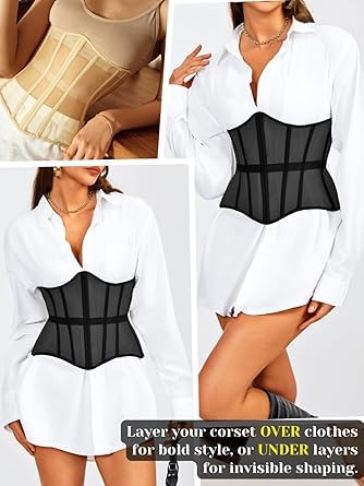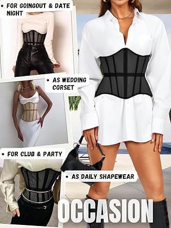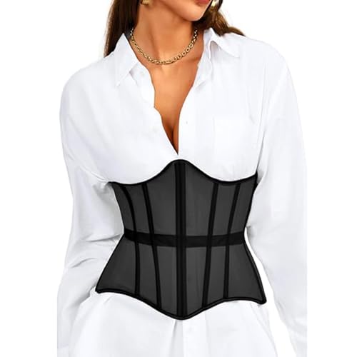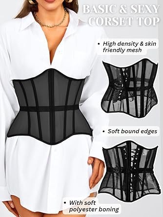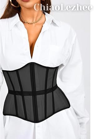 fashion mania - حزام كورسيه تحت الصدر، مشد خصر مع شبكة ورباط، مدعم بعوارض، ملابس داخلية مشكلة للجسم لحفلات الزفاف والمناسبات الخارجية للنساء