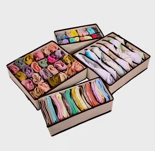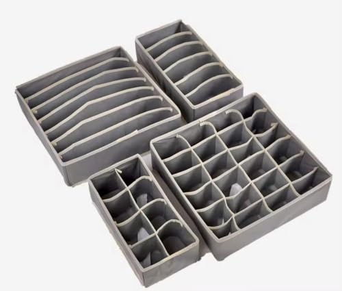 Generic - منظم أدراج للملابس الداخلية، طقم 4 قطع، صناديق تخزين قابلة للطي للجوارب والملابس الداخلية والحمالات، بيج ورمادي