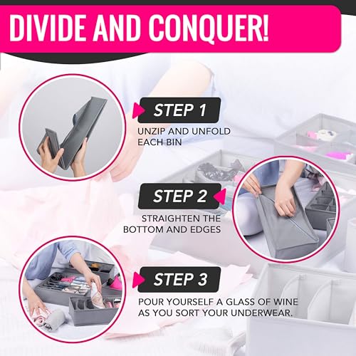 Generic - منظم ملابس داخلية منظم أدراج لتخزين الملابس الداخلية وحمالة الصدر والشرابات والملابس منظم للدرج للملابس الداخلية والبانتيهات واللانجري رمادي