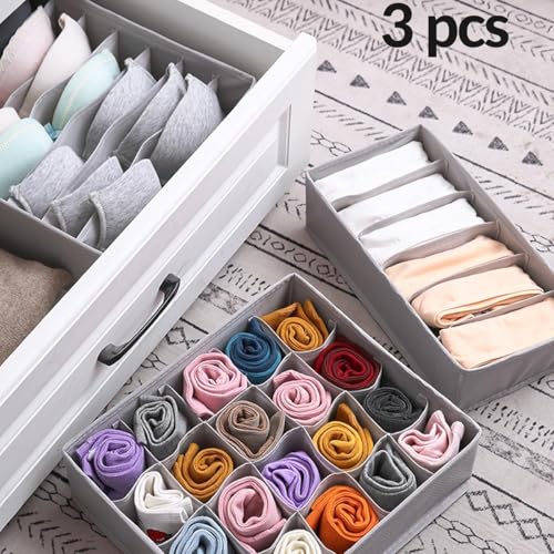 - A set of three divider boxes specifically designed to organize underwear and socks, providing a stylish and effective storage solution for your personal items.