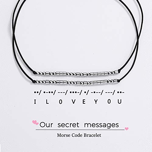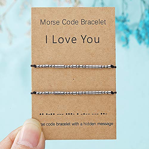 UNGENT THEM - مجموعة اساور مورس كود بتصميم بعبارة «I Love You» من انجينت ذيم، مناسبة للازواج وكهدية للاحباء الرجال او النساء - قطعتان, 10 inches