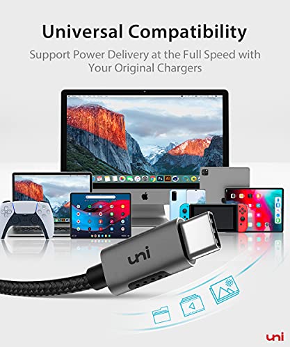 uni - كيبل USB C الى يوني 100 واط للشحن السريع [20 فولت - 5 امبير] مضفر لماك بوك برو وايباد وديل 10 قدم - 3 متر عبوة من قطعتين حاسوب لوحي محمول هاتف ذكي .