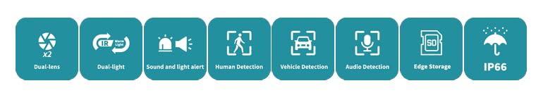 • تصميم عدسة مزدوجة: كاميرا ثابتة 3 ميجابكسل مع كاميرا متحركة PTZ 3 ميجابكسل في جهاز واحد، توفر قناتي فيديو بعنوان IP واحد لمراقبة المشهد العام والتركيز على التفاصيل في آن واحد