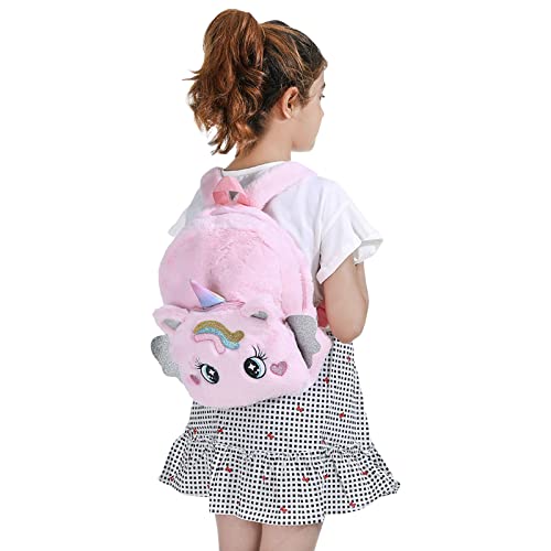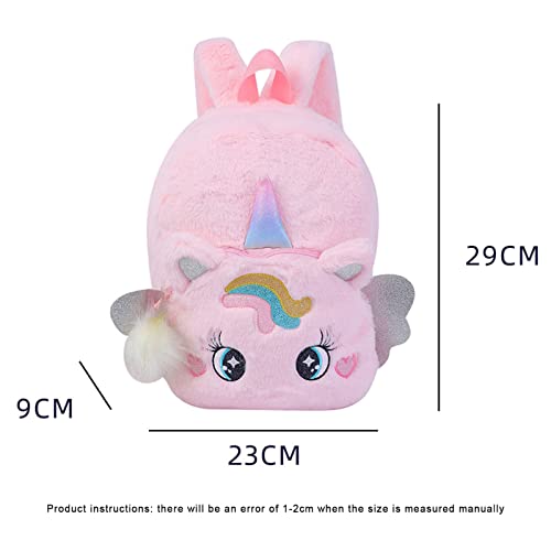 ANFUTON - Unicorn Backpack for Girls Kids Cute Mini Unicorn Bookbags School Bags Fluffy Preschool Knapsack for Nursery (Pink, 23cm*29cm*9cm)