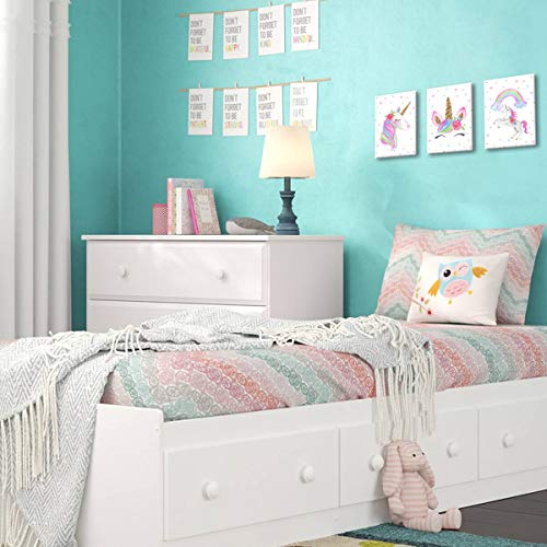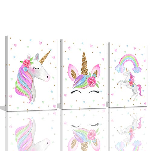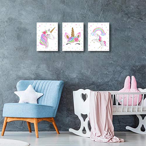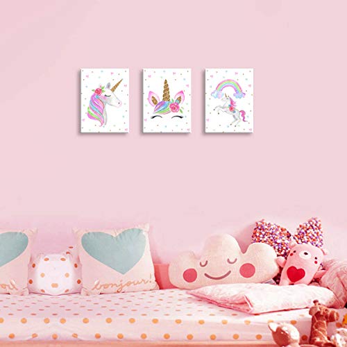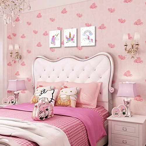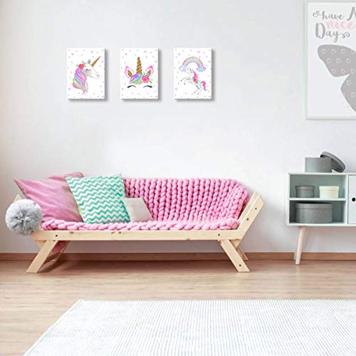 PulsatingFingertip - تابلوه جداري فني بتصميم يونيكورن بالوان قوس قزح لغرفة الحضانة والاطفال ديكور قماشي بينك مطبوع بشكل البنات البيبي زهري