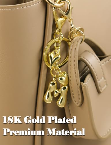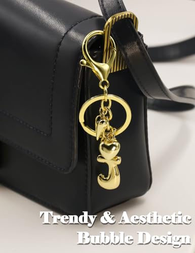 UniCrena - Gold Initial Letter Keychain for Women, Cute Bubble Heart Bag Charms Purse Handbag Accessories Gifts