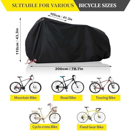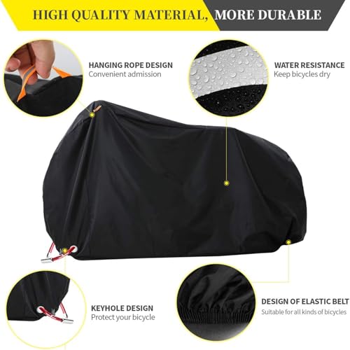 - 🚲 【Durable & Waterproof】 Outdoor bike cover waterproof is made of waterproof 210T Nylon material,with PU and UV coating protect bicyles from dust, dirt, sun, rain, UV and pollutants. Keep your bike like new for a long time.