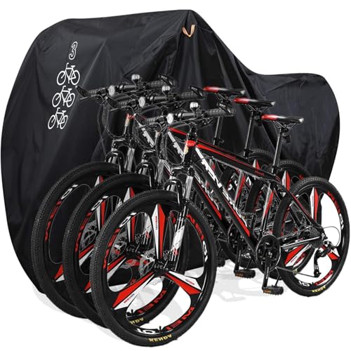 - 🚲 【Blg Enough For 1-3 Bikes】 78.7'' L x 41.3'' W x 43.3'' H, now it can easily cover 1 or 3 bike up to 26" wheel size,XL bike cover is suitable for most mountain bicycles, city bicycles,Road, Comfort, Hybrid, Cruiser, and other bikes up to 26" wheel size.(PLEASE MEASURE YOUR BIKE BEFORE ORDERING)