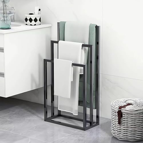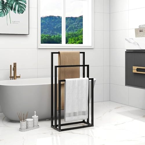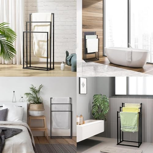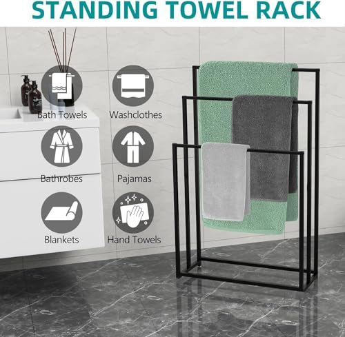 - 【Freestanding Towel Rack】- Freestanding towel rack is designed with a 3-tier stepped towel bar that provides ample space for hanging and drying towels and clothes. Its open structure allows for optimal air circulation and ensures quick and efficient drying of clothes. Metal Towel Bar Stand is well ventilated and perfect for drying multiple towels at the same time