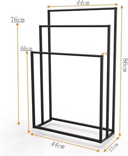 - 【Stable and Practical】- Size: 86H x 21W x 44L(cm), Bath Towel Rack with enough height and width for extra large towels and blankets. Towel racks for bathroom is made of sturdy steel with a rectangular base to ensure stability. Sturdy metal frame is meticulously polished without any rough edges. The metal tubes are durable and have a matte silver powder coated finish to prevent oxidation and rust