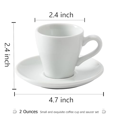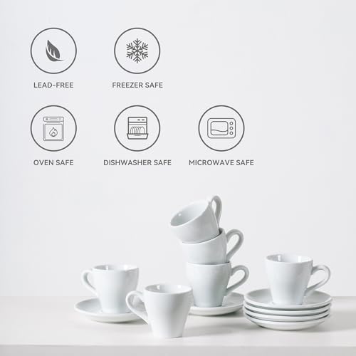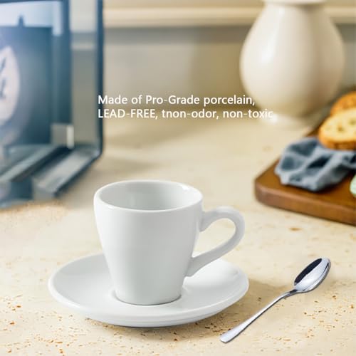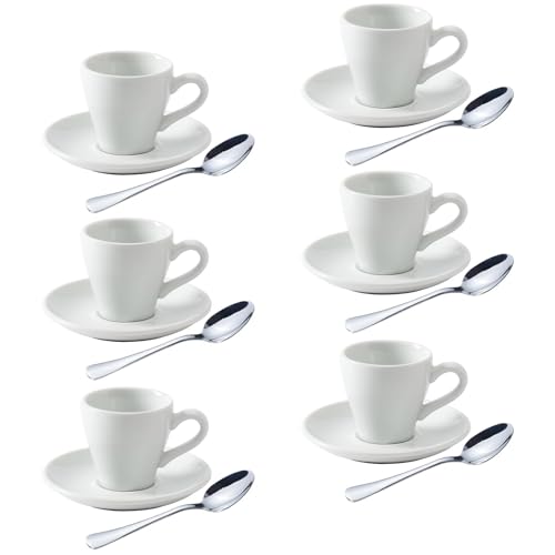 Unilives - طقم أكواب اسبريسو وصحون من 6 قطع مع ملعقة، مجموعة لمشروبات القهوة المتخصصة والكابتشينو واللاتيه والامريكانو والشاي من يونيلايفز، أبيض