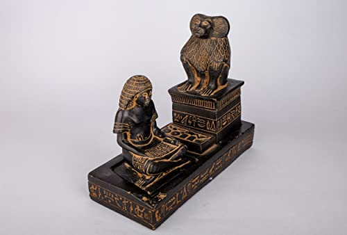 Generic - Unique Ancient Egyptian statue of The royal Scribe Nebmertuf writing under the protection of the Moon God Thoth . He was depicted as an Ibis bird or a baboon. Heavy black stone Made in Egypt .