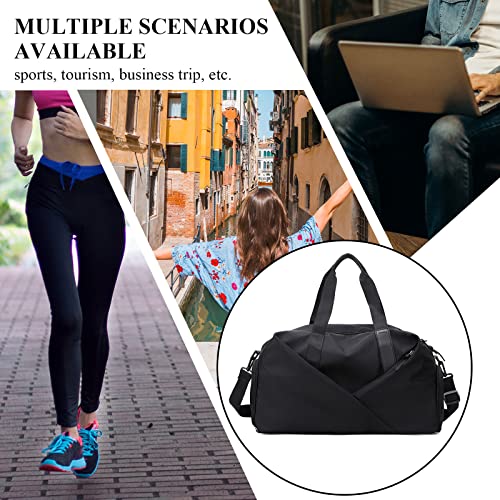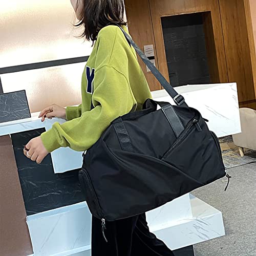 BangBoom - شنطة دفل للجنسين للياقة البدنية وصالة الالعاب الرياضية والسفر مع جيب تخزين لفصل الملابس الجافة والرطبة ومقاومة للماء للتمارين والسباحة واليوغا، كتف متعددة الوظائف، اسود، انيقة وبسيطة، قماش اكسفورد .