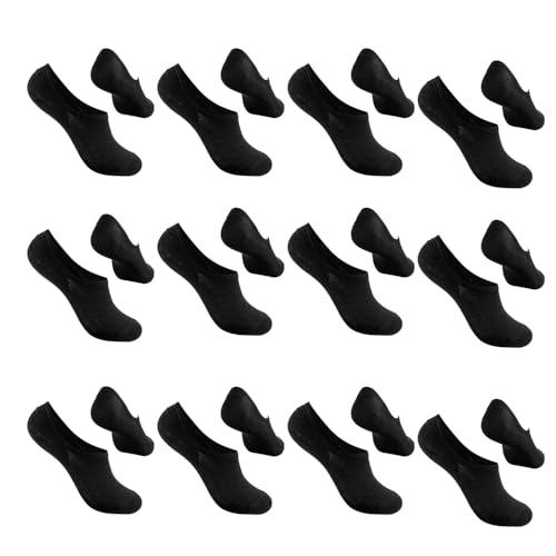 Generic - Unisex Free Size Cotton Ankle Socks (Black, 12 Pack)